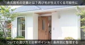 比較時の着眼点脱毛サービスは大きく分けて、医療機関で行う「医療脱毛クリニック」と、エステティックサロンで行う「サロン脱毛」の2つに分類