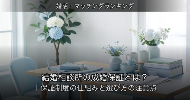 結婚相談所の広告やパンフレットで「成婚保証」や「成婚サポート付き」という表現を見かけることがあります。しかし、その内容はサービスによって大きく異なり、「保証」の意味を誤解したまま入会してしまうと後悔につながる場合があります。本記事では、結婚相談所の成婚保証の仕組みと、入会前に確認すべきポイントを解説します。