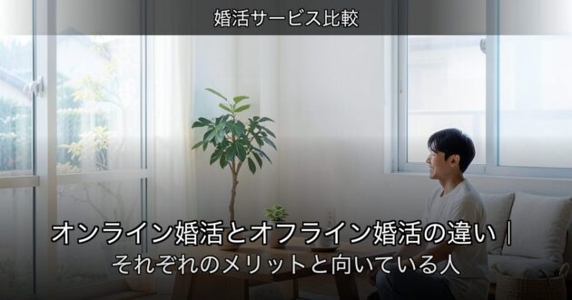 婚活の場として「オンライン(アプリ・ウェブ)」と「オフライン(パーティー・相談所・街コン)」のどちらを使うべきか迷う方は多いです。それぞれに強みと弱みがあり、どちらが良いかは個人のライフスタイルや目的によって変わります。本記事ではオンライン婚活とオフライン婚活の違いを比較し、自分に合った選び方を解説します。